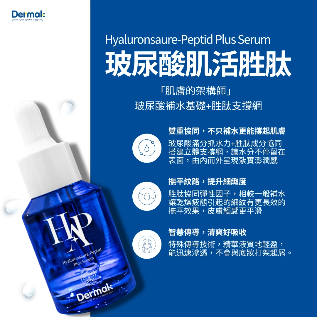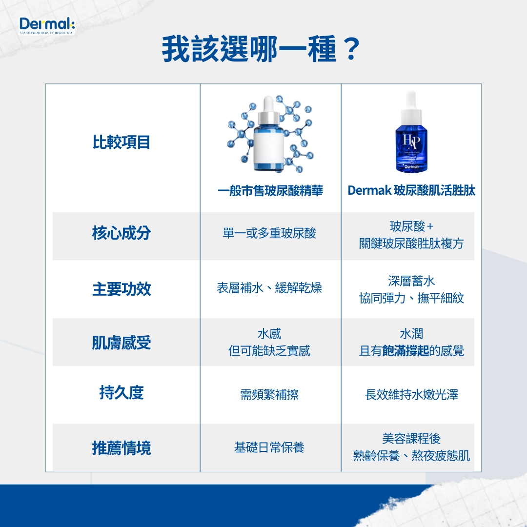 如果說一般玻尿酸是給肌膚喝水,那麼 Dermak 玻尿酸肌活胜肽 就是「喝水+核心運動」。