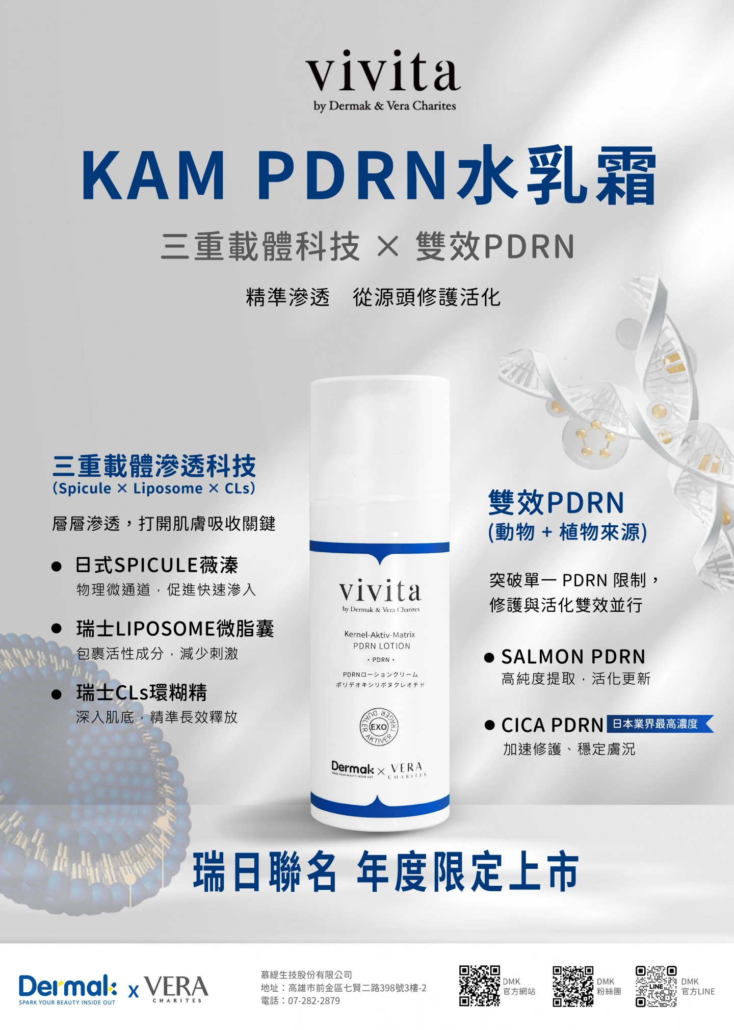DERMAK 瑞士特殊載體技術 X VERA 日本匠心精細製程。 結合瑞士與日本的 三重載體技術,可有效提升肌膚彈性、改善乾燥與粗糙、長期使用讓肌膚看起來更年輕健康。